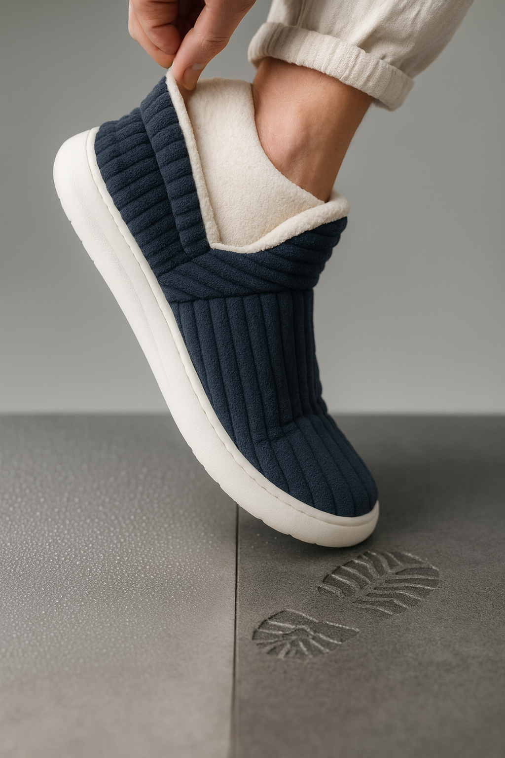 Generic slippers trap sweat, slip on tile, and pancake in weeks. Ours combine airflow knit + plush lining for warmth without clamminess, a tread that grips kitchen tile and wood, and a high-rebound core that keeps its bounce.
