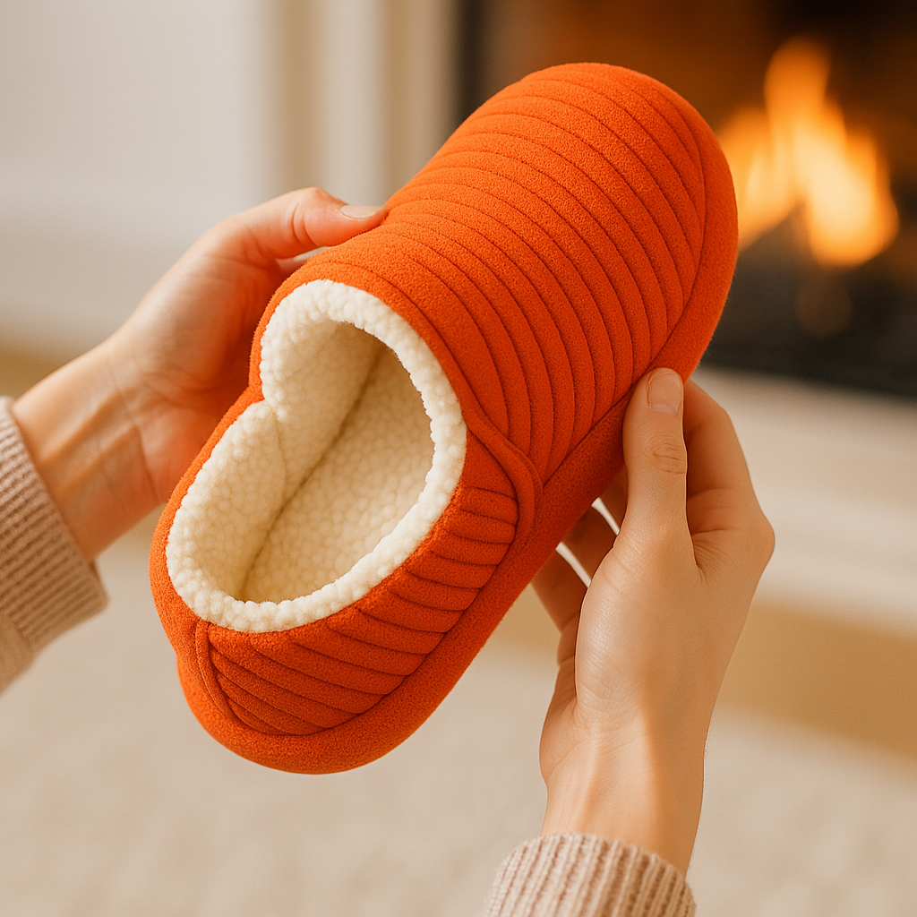 Generic slippers trap sweat, slip on tile, and pancake in weeks. Ours combine airflow knit + plush lining for warmth without clamminess, a tread that grips kitchen tile and wood, and a high-rebound core that keeps its bounce.
